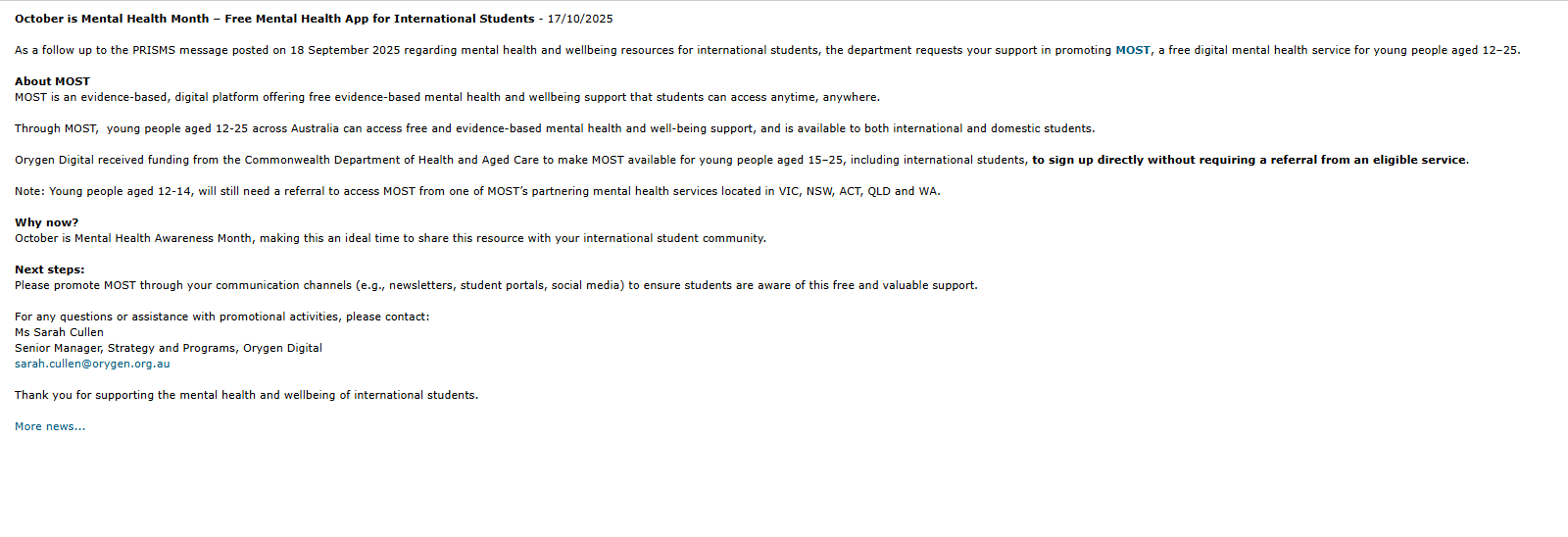 Mental Health Month by Gemma Sum - Wednesday, 22 October 2025, 2:31 PM Number of replies: 0 Dear student! There is a new application called MOST that is for Free, please read below regarding the applciation Permalink